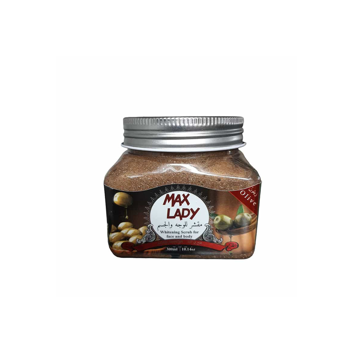 اسکراب شنی صورت و بدن مکس لیدی با عصاره زیتون حجم 300 میل