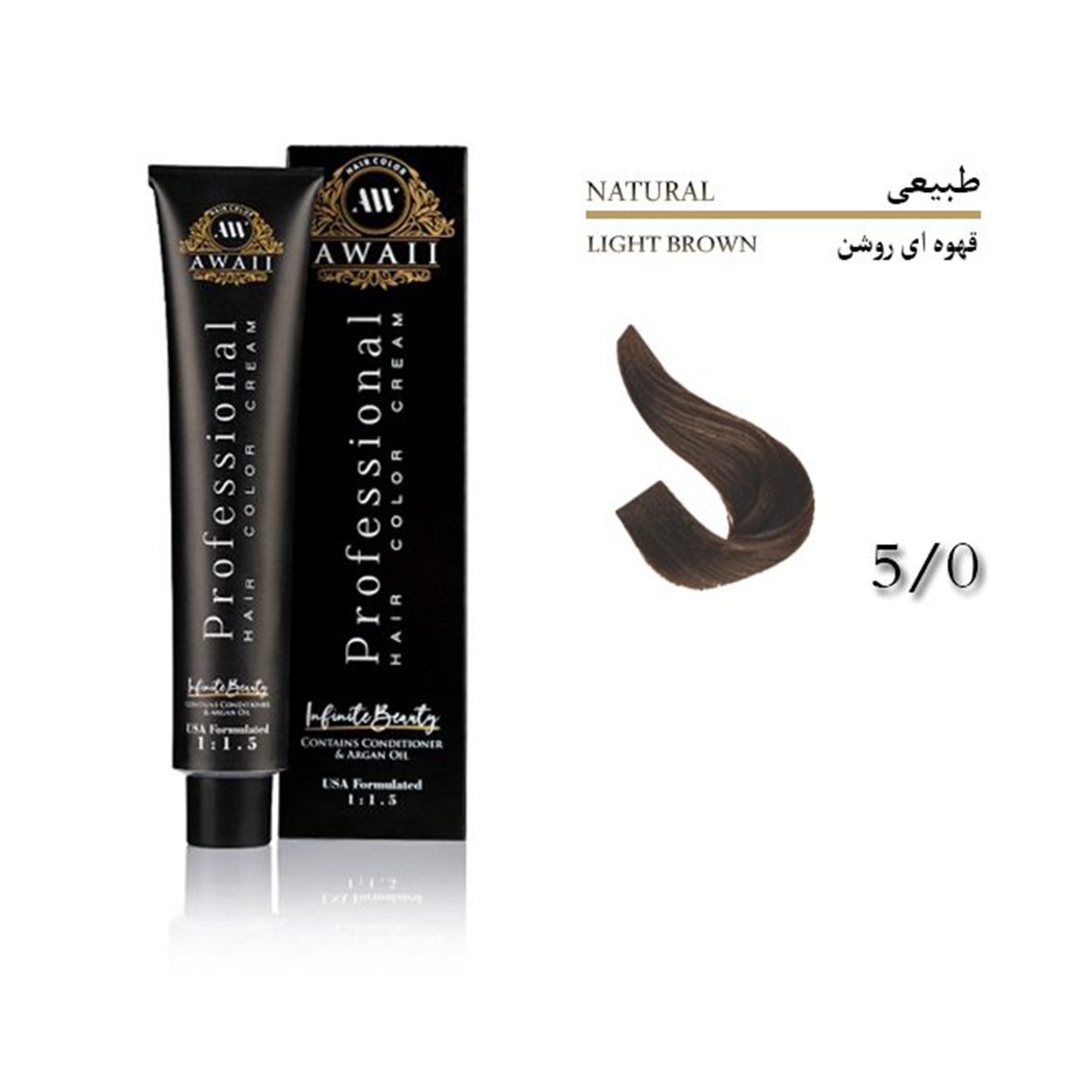 رنگ مو آوایی شماره 5.0 حجم 120 میل رنگ قهوه ای روشن Awaii
