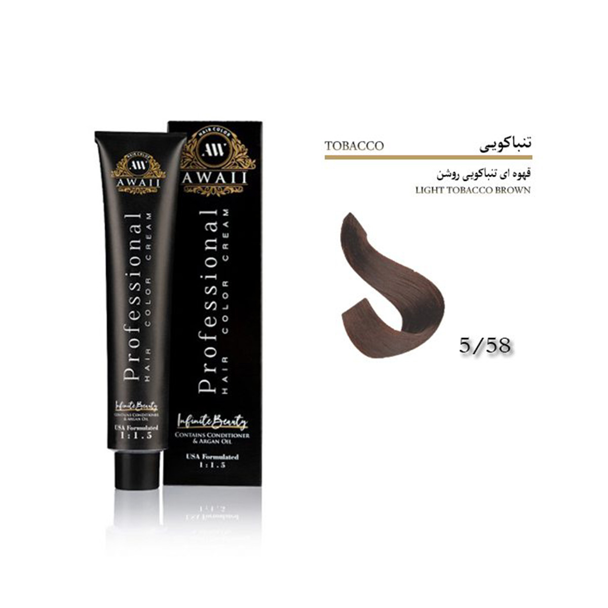 رنگ مو آوایی شماره 5.58 حجم 120 میل رنگ قهوه ای تنباکویی روشن Awaii